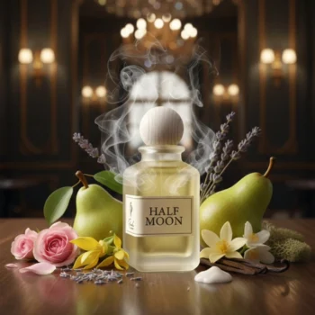 عطر Half Moon.. حكاية سحر تكتمل تحت ضوء القمر 🌙✨ استمتعي بتناغم الطبيعة في زجاجة واحدة. عطر “هاف مون” مزيج أنثوي ساحر يجمع بين برودة الليل ودفء الذكريات. توليفة فريدة تبدأ بانتعاش الكمثرى واللافندر، وتستقر على فخامة المسك والفانيليا. عطركِ هو السر الذي يضيء حضوركِ.. جربيه الآن.